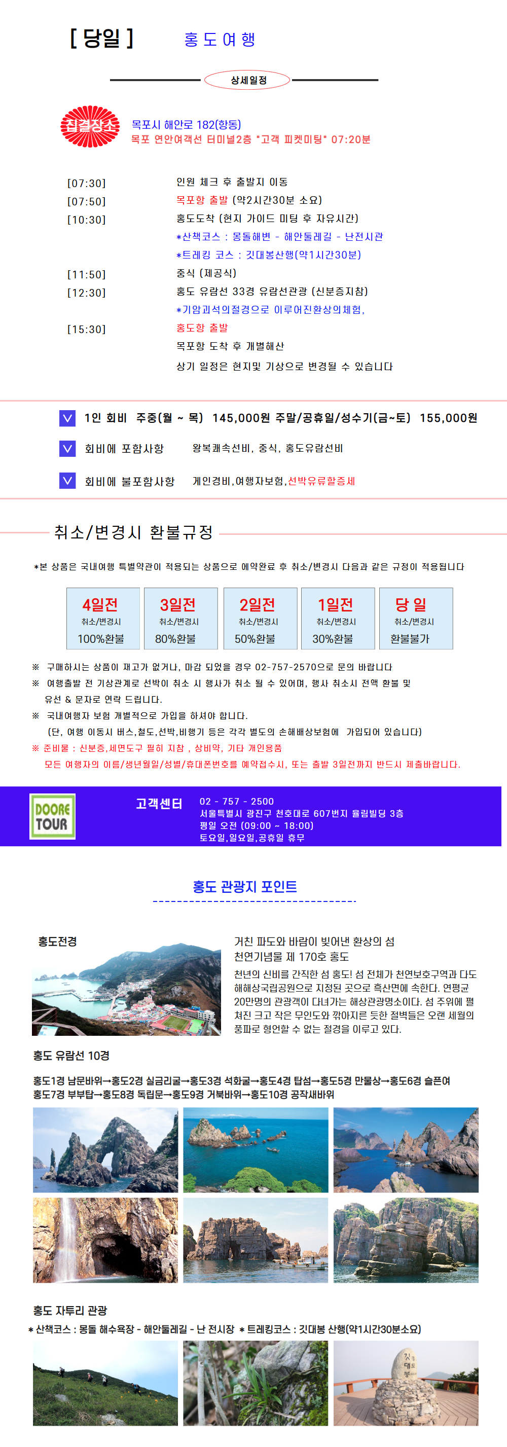 | 포함사항 | ,왕복선박비, 홍도 유람선료, 중식 |