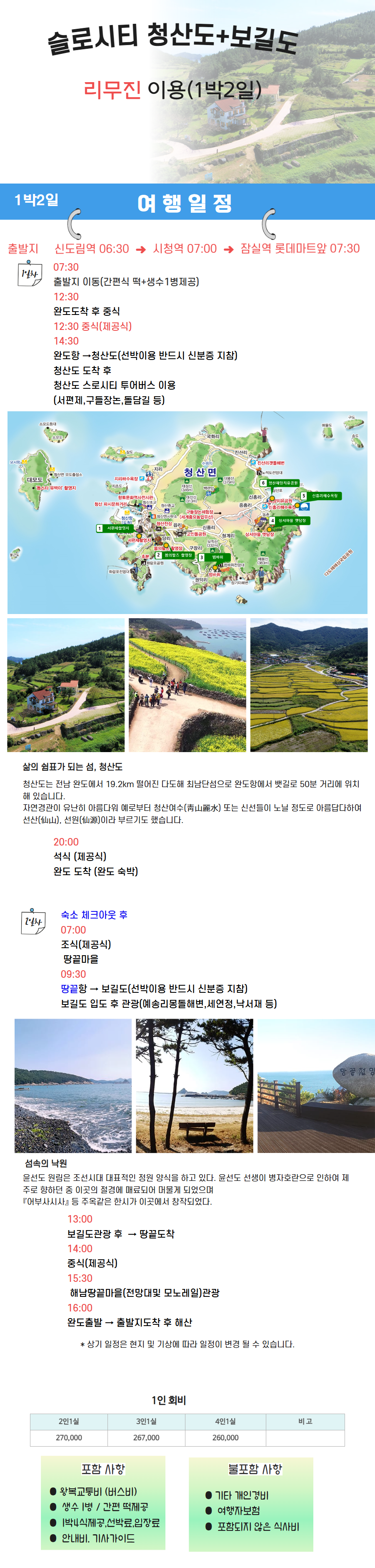 포함사항 | 왕복교통비,1박4식,입장료,차량보험 |