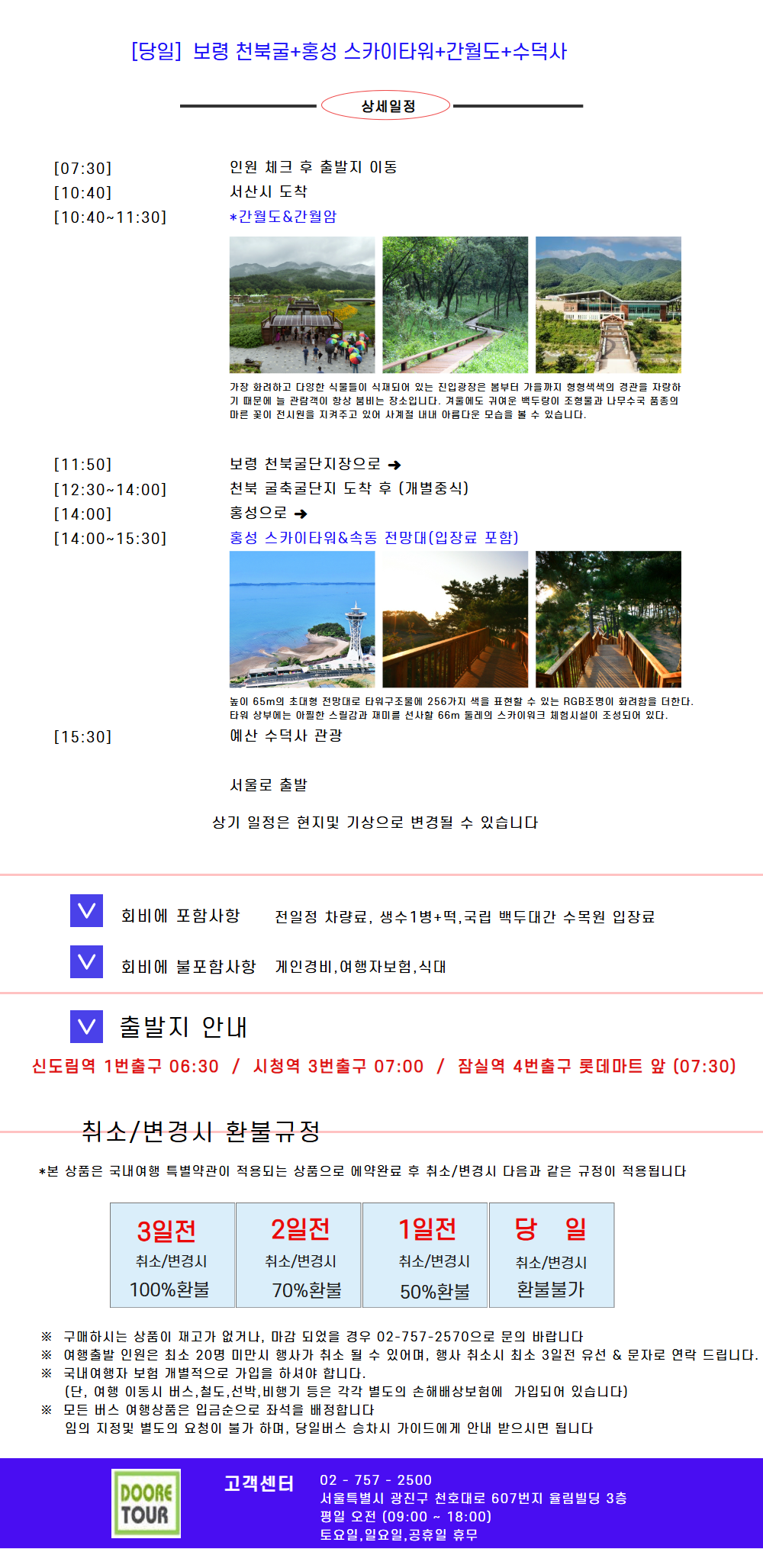 | 포함사항 | 왕복차량비,봉사료,생수,조식(떡)제공 |